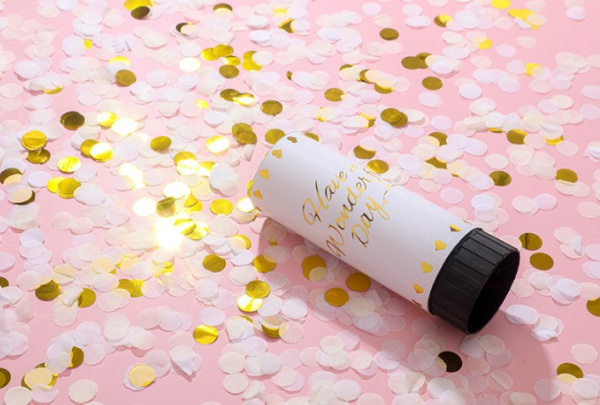 Пневмохлопушка, Белый, Конфетти тишью, 10 см, 1 шт.